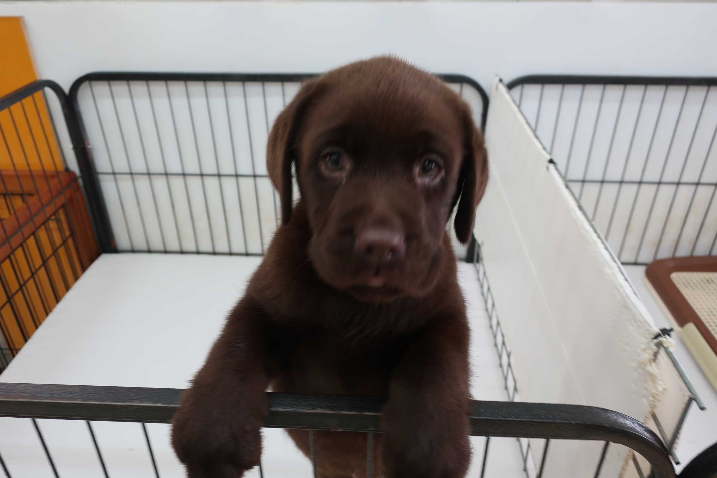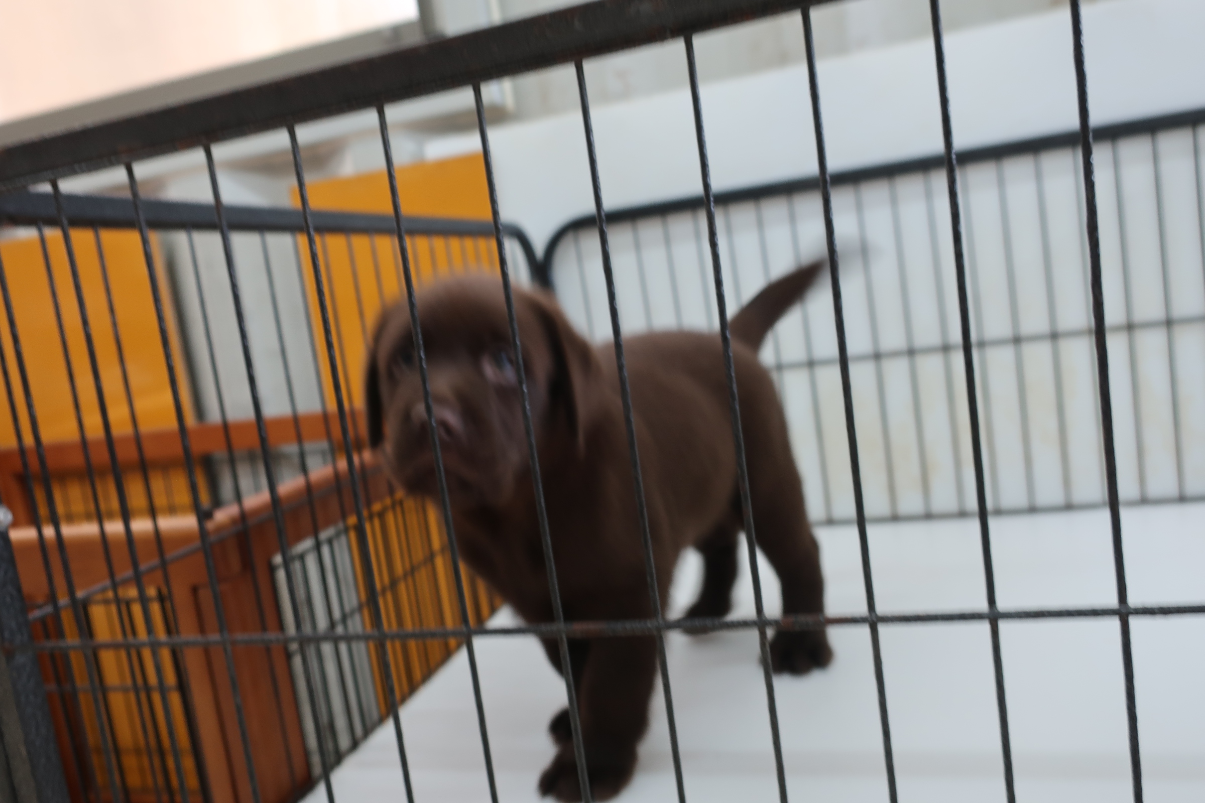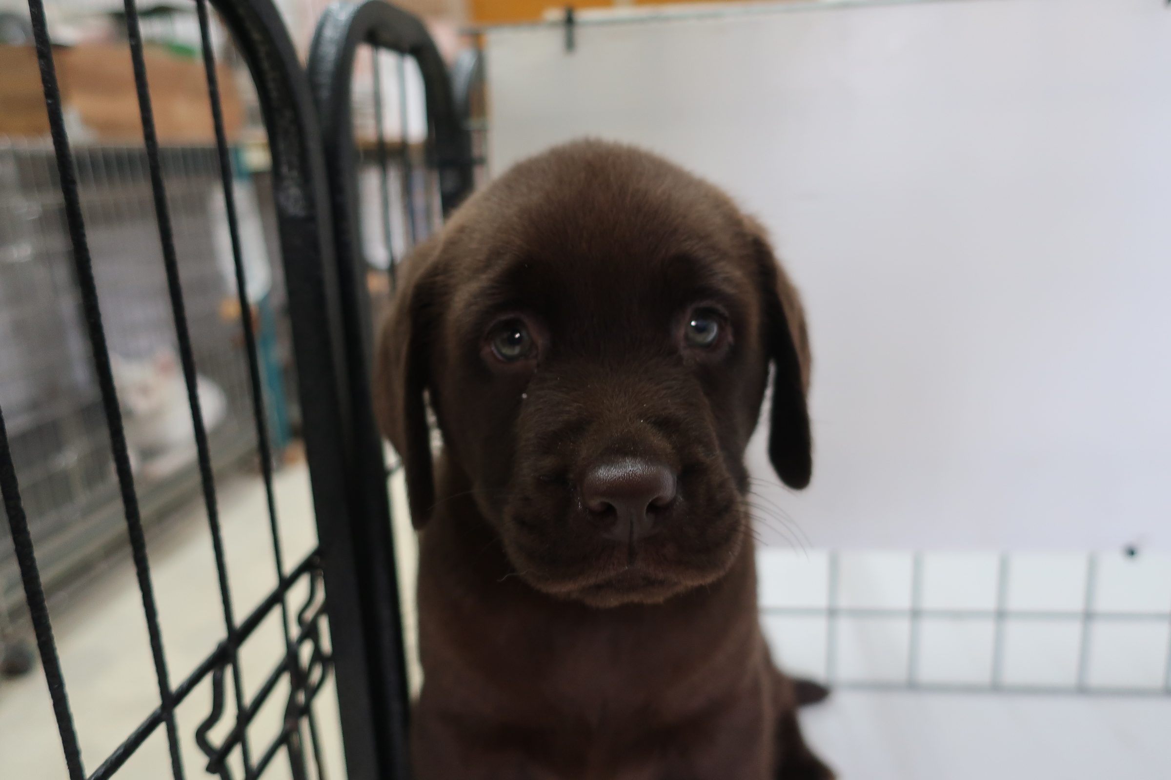 とてもかわいいラブラドール・レトリバーです。 父親の体色はブラックで体重は31kg、母親はチョコレートで体重が27kgです。 この子たちもとても立派な体格です。 現在のところ鼠経ヘルニアや出へそ、嚙み合わせ等問題ありません。