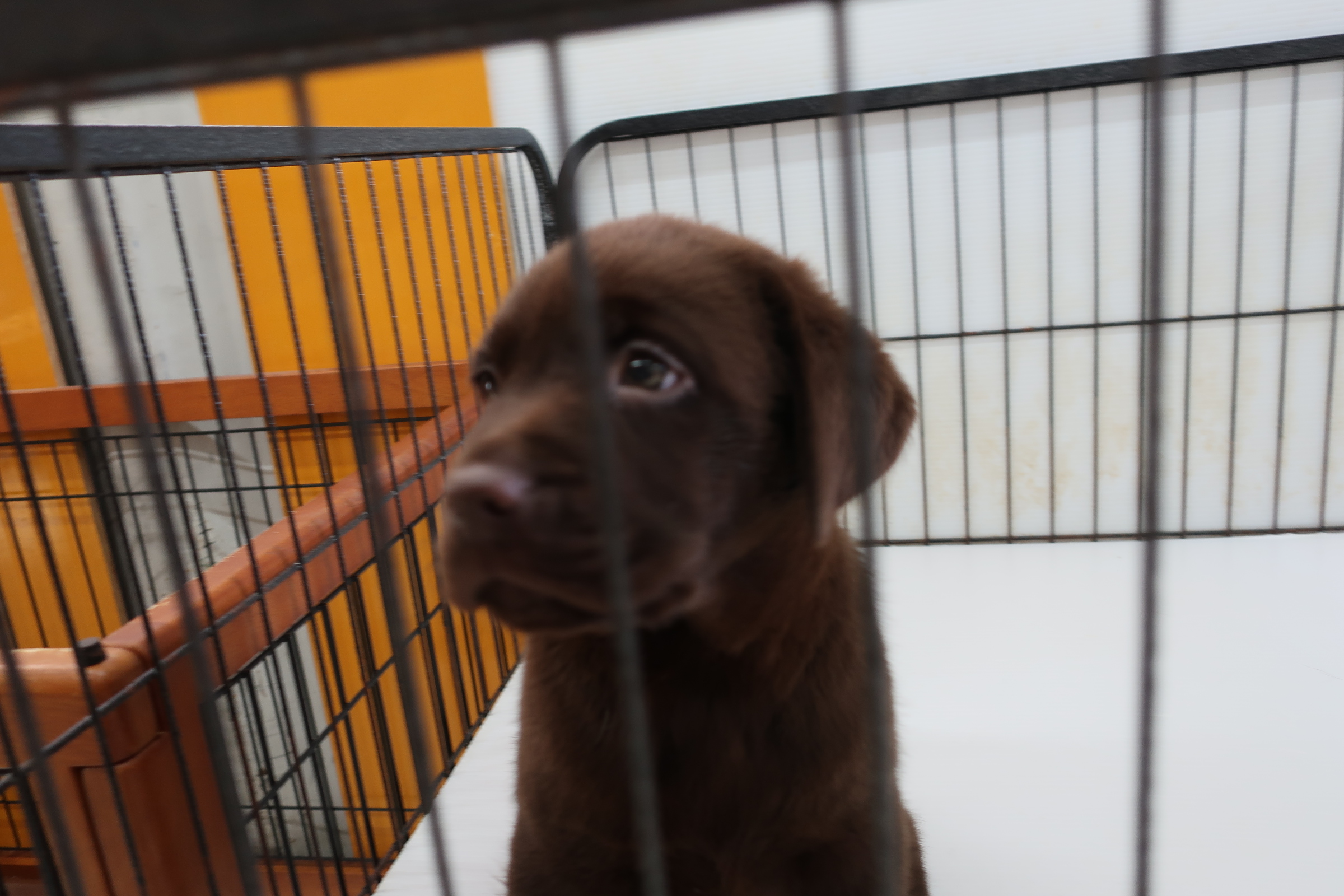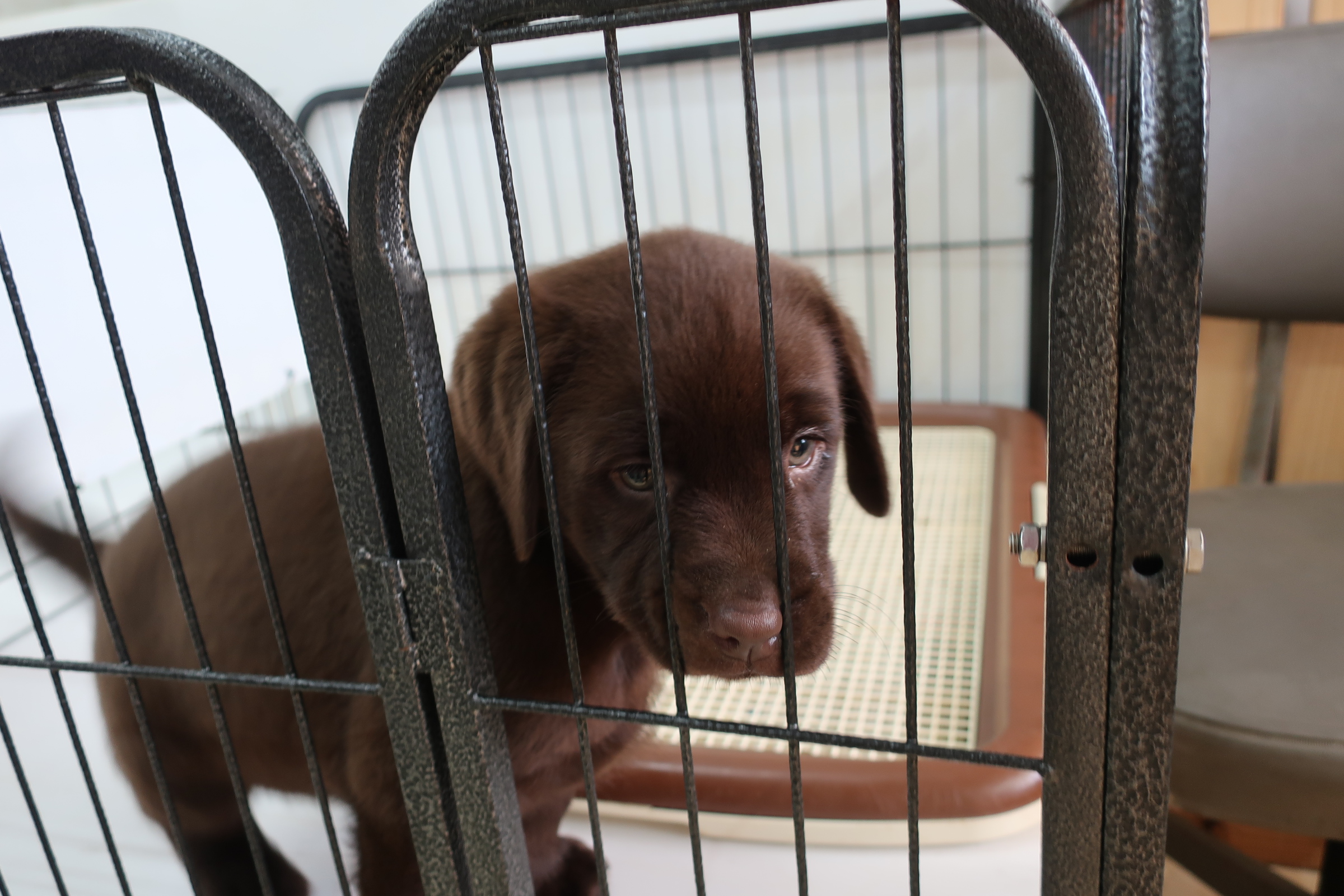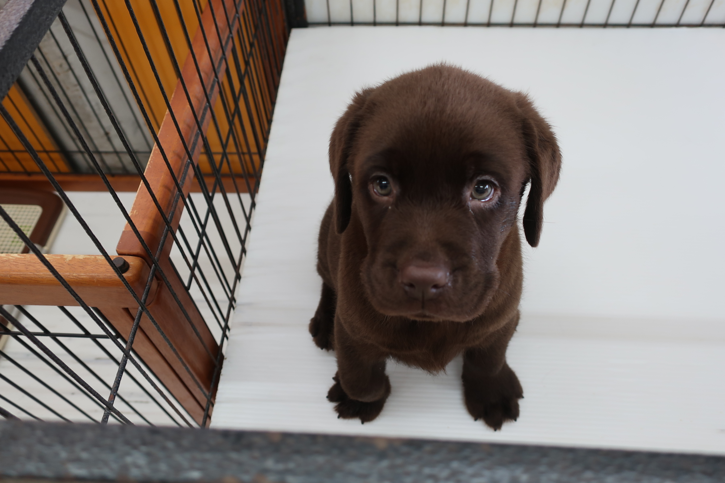 とてもかわいいラブラドール・レトリバーです。 父親の体色はブラックで体重は31kg、母親はチョコレートで体重が27kgです。 この子たちもとても立派な体格です。 現在のところ鼠経ヘルニアや出へそ、嚙み合わせ等問題ありません。