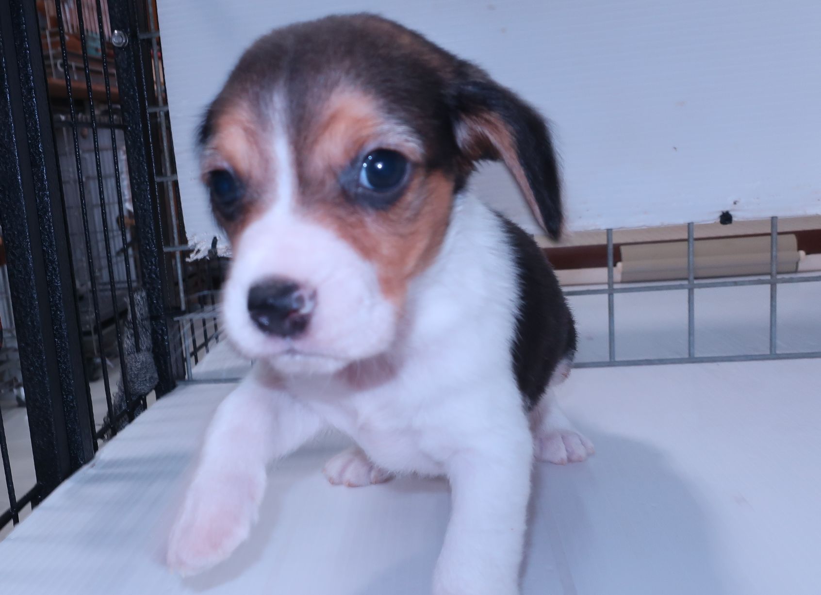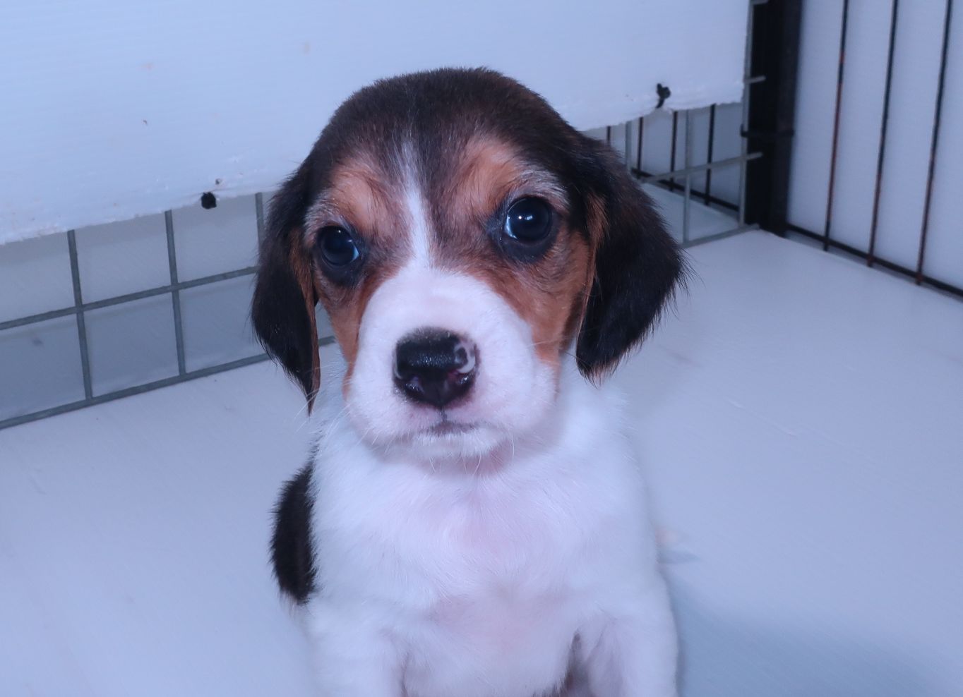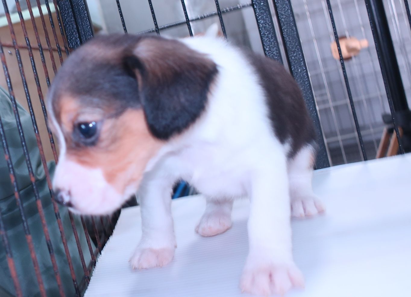 とてもかわいいアメリカンビーグルです。 父親の体重は6.5kg、母親が5kgで小ぶりなビーグルです。 現在のところ鼠経ヘルニアや出へそ、嚙み合わせ等問題ありません。