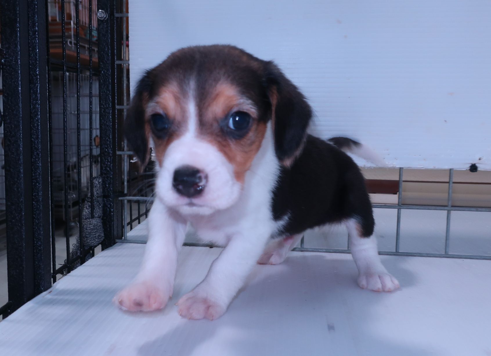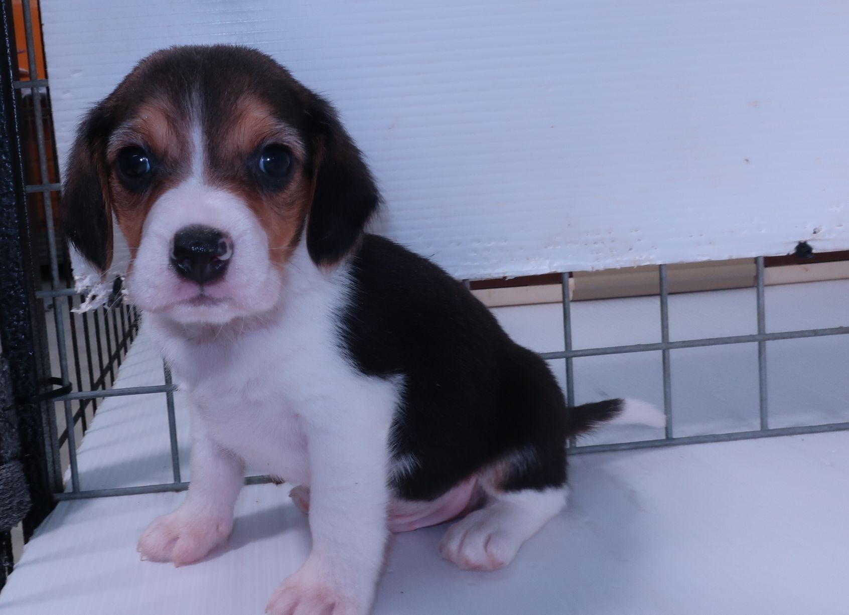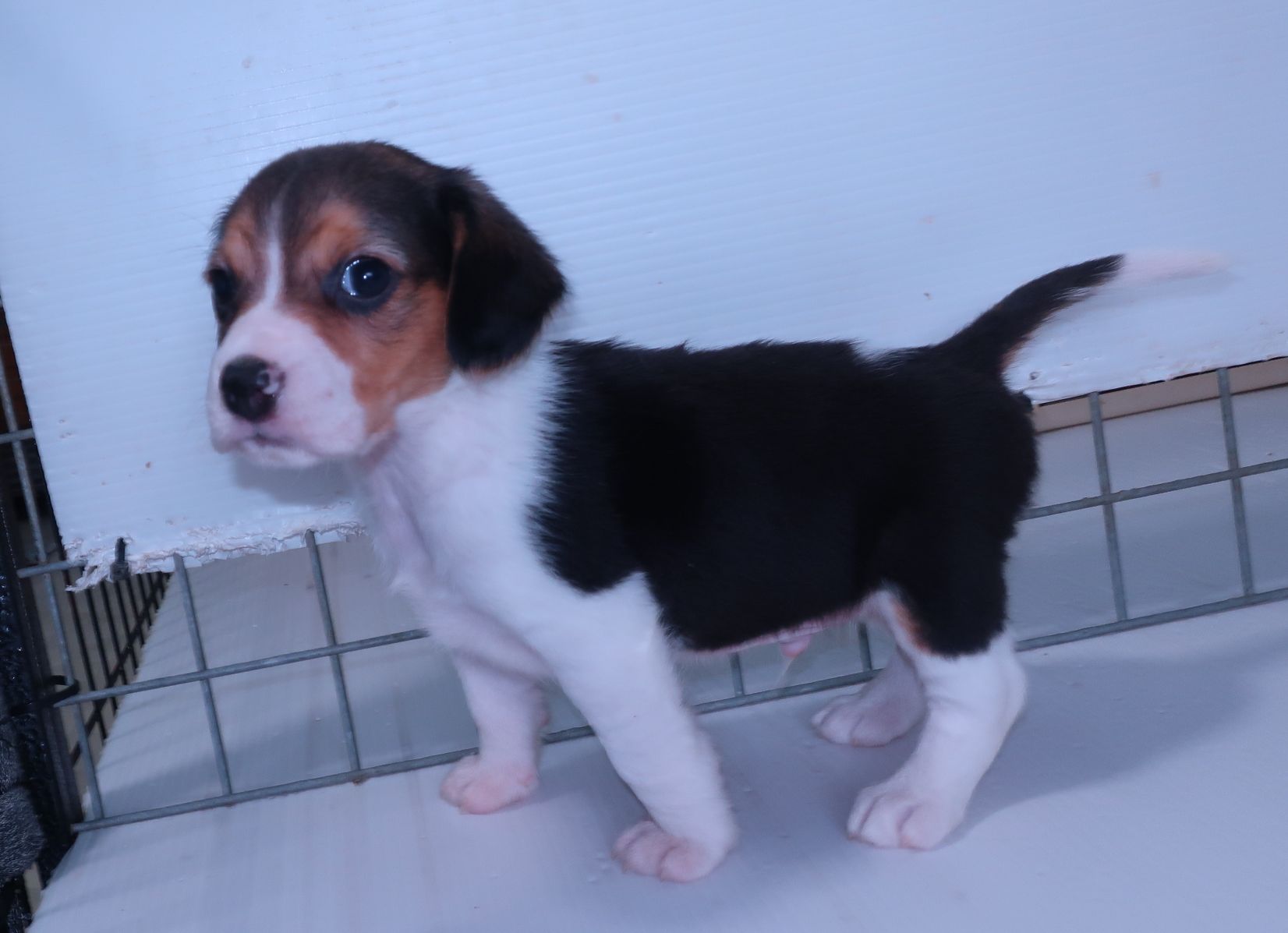 とてもかわいいアメリカンビーグルです。 父親の体重は6.5kg、母親が5kgで小ぶりなビーグルです。 現在のところ鼠経ヘルニアや出へそ、嚙み合わせ等問題ありません。